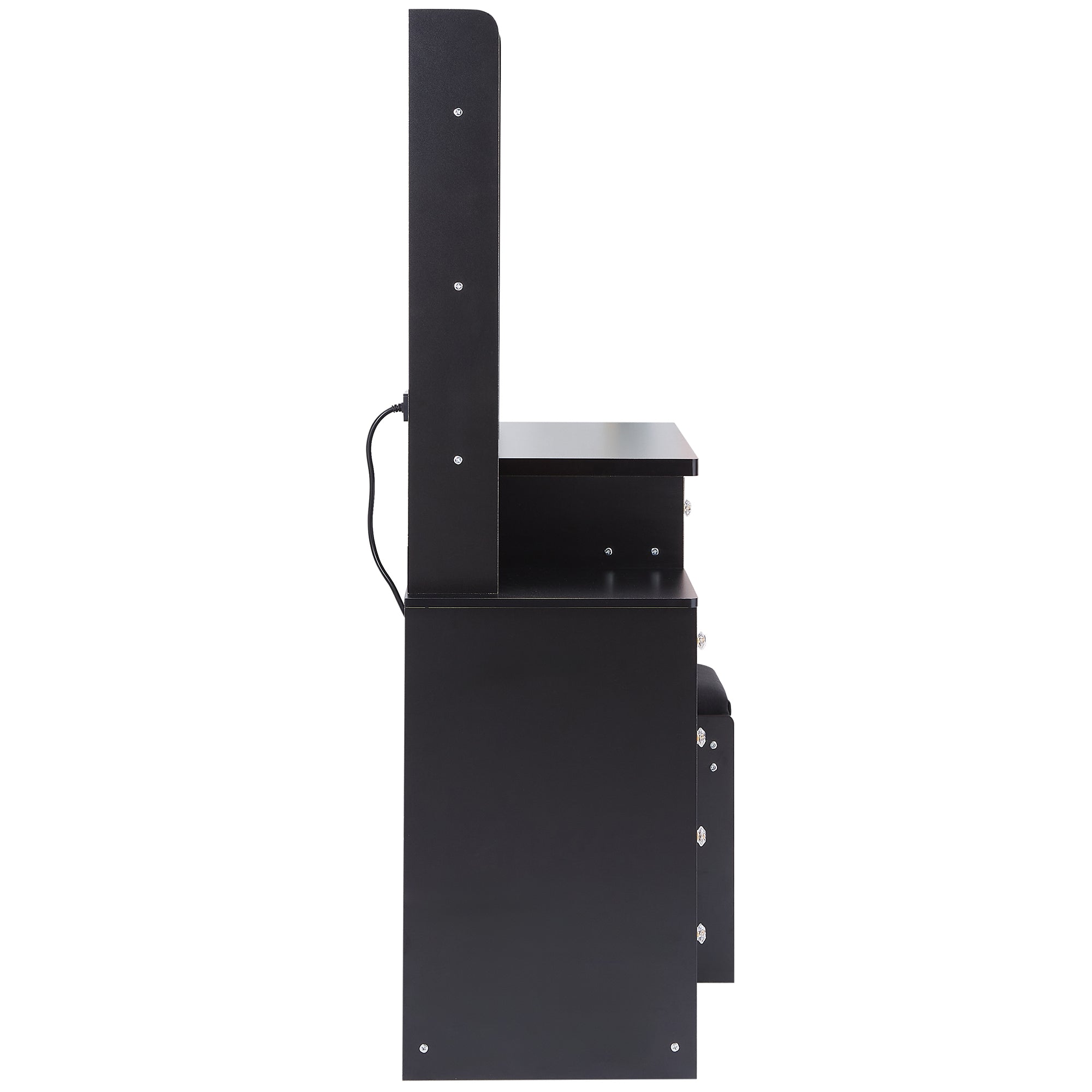41" Large Size Left Bedside Cabinet Vanity Table+Cushioned Stool Dresser Set, 2 AC+2 USB Power Station, Hair Dryer Stand, Extra Large Touch Control LED Mirror, 3-color Switch, EPA, GCC, UL Certificate
